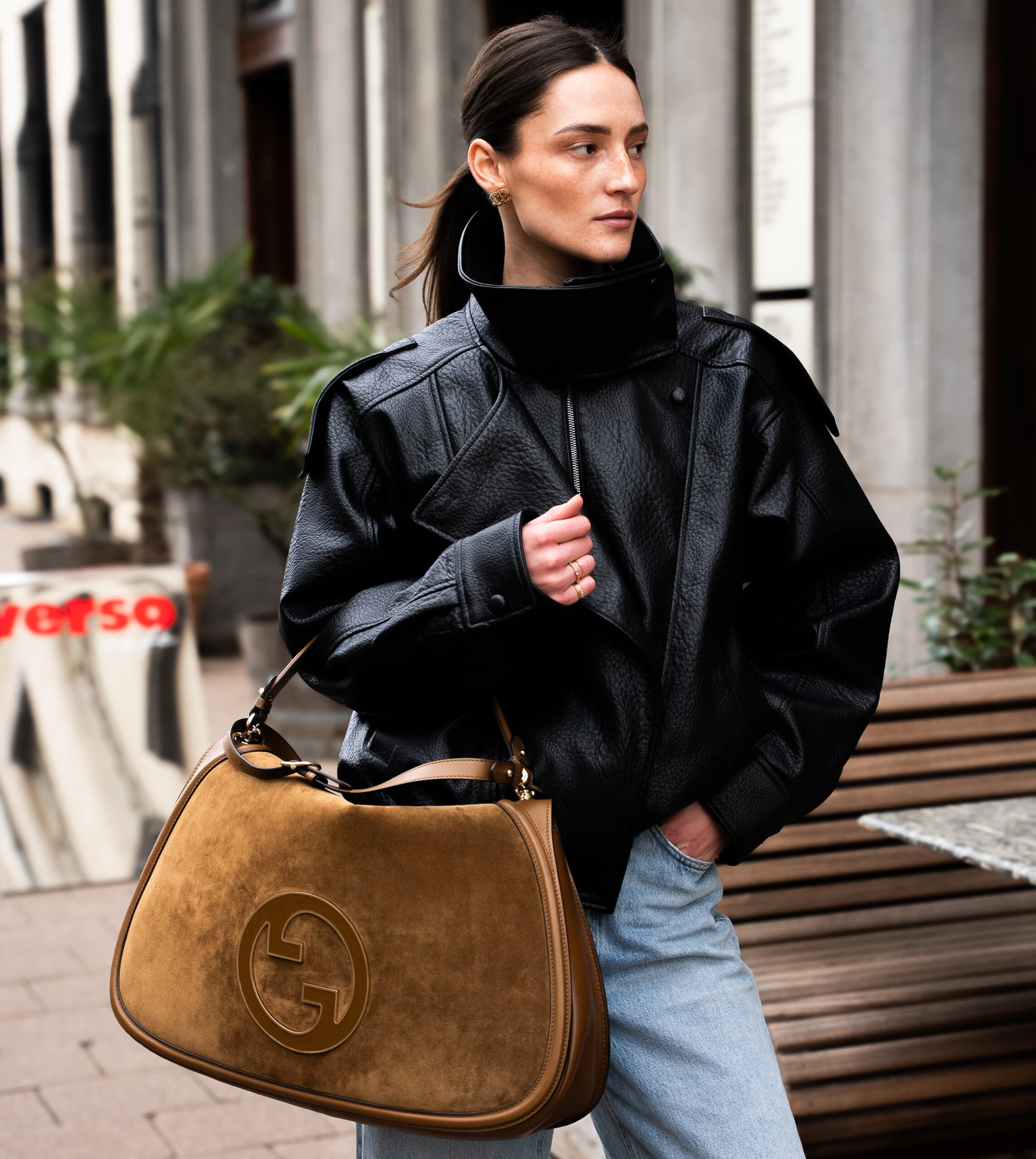 De Gucci Blondie 2 way bag XL is een elegant statement piece met een zachte, verfijnde uitstraling. Het ontwerp combineert afgeronde lijnen met het iconische GG-embleem en weerspiegelt Gucci’s hernieuwde focus op tijdloze vormen en luxe materialen. Een model dat moeiteloos kracht en elegantie samenbrengt.