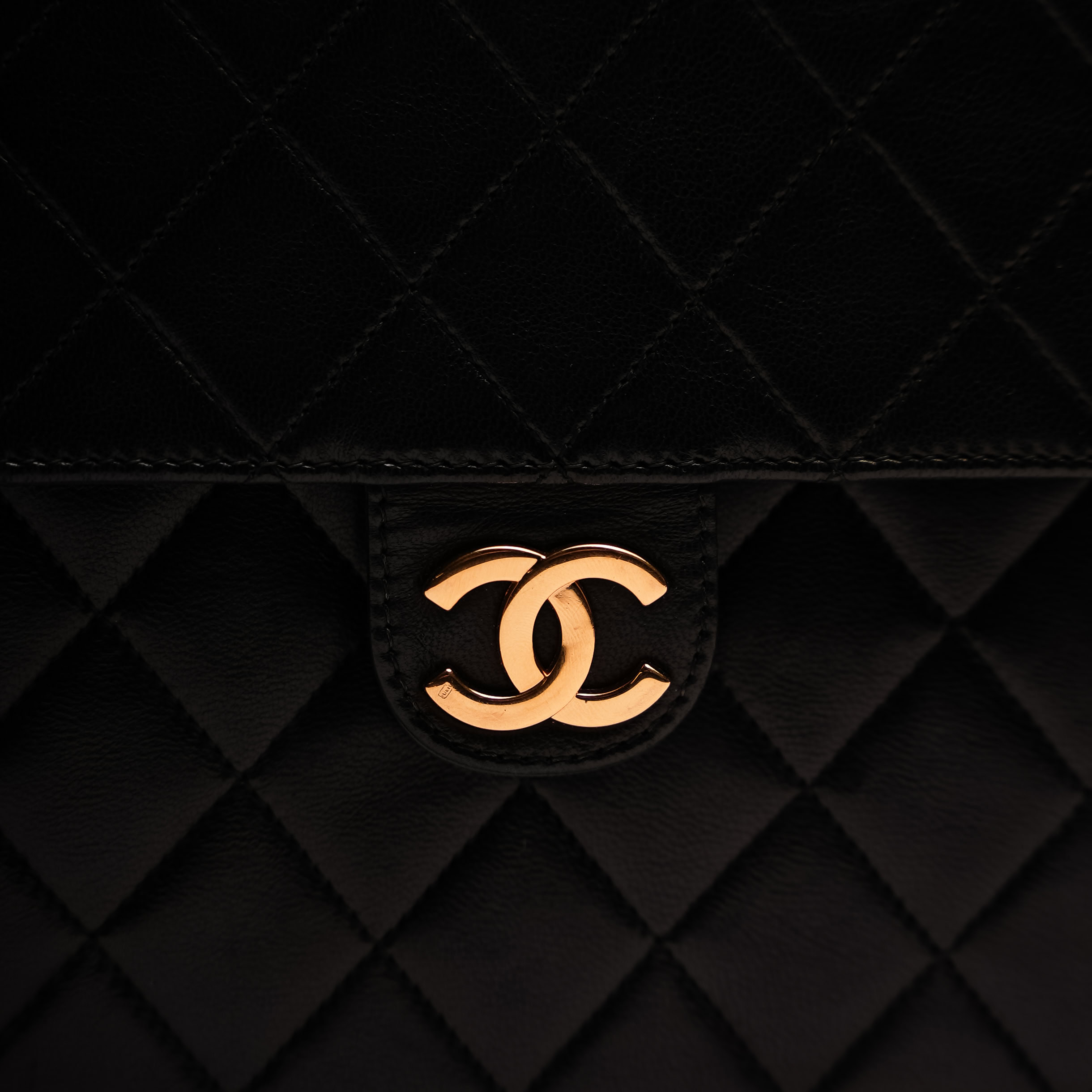 Vintage Chanel uitvoering met push lock sluiting, gewaardeerd om haar tijdloze ontwerp en ingetogen luxe.